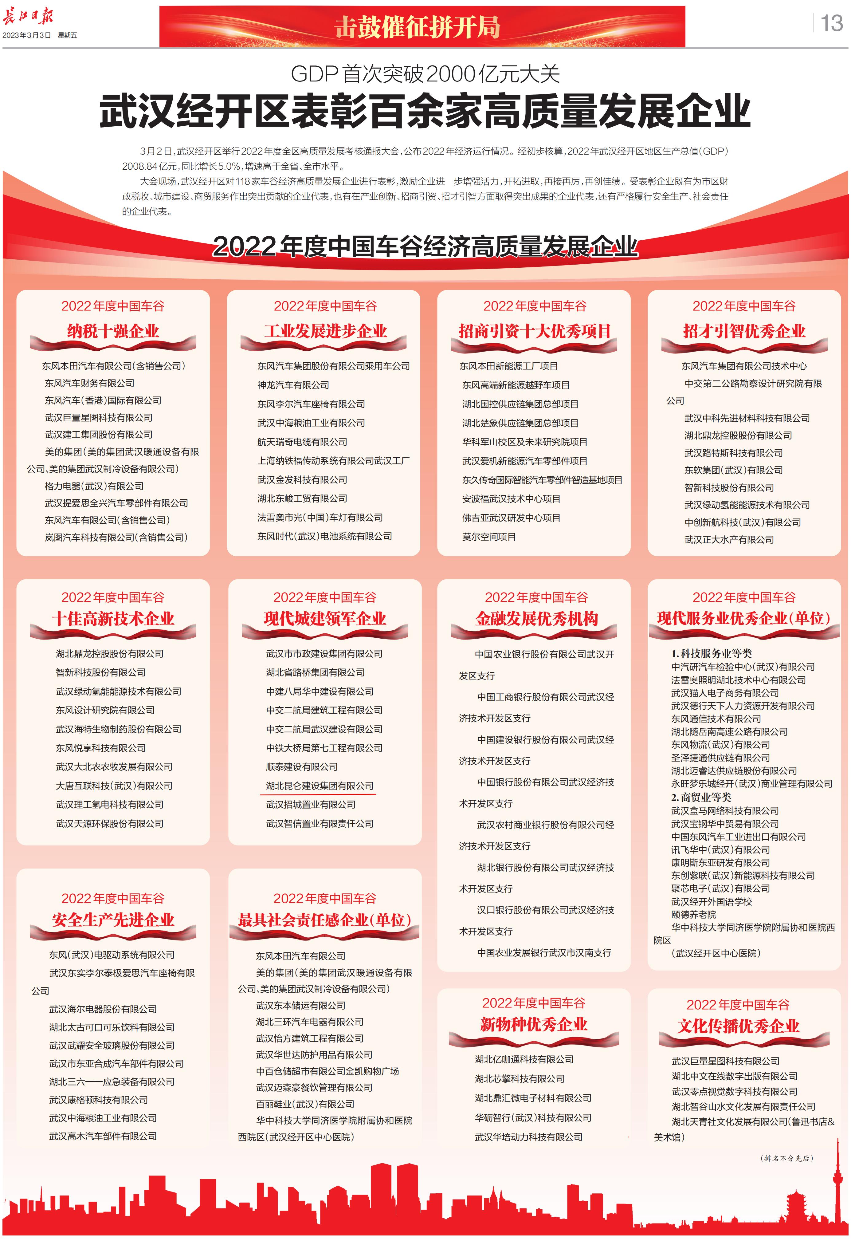 2022年昆侖集團榮登武漢經開區高質量發(fā)展企業(...