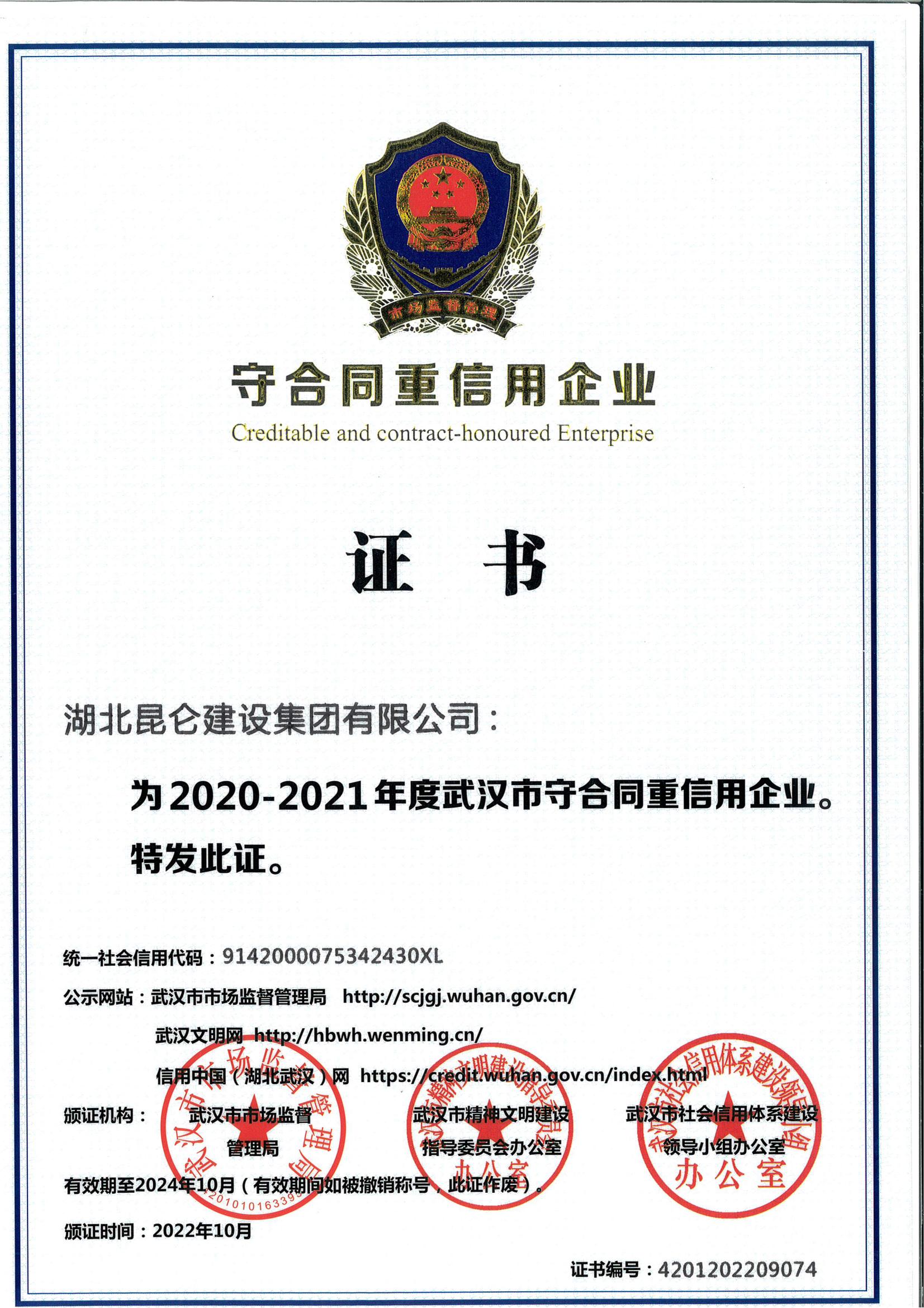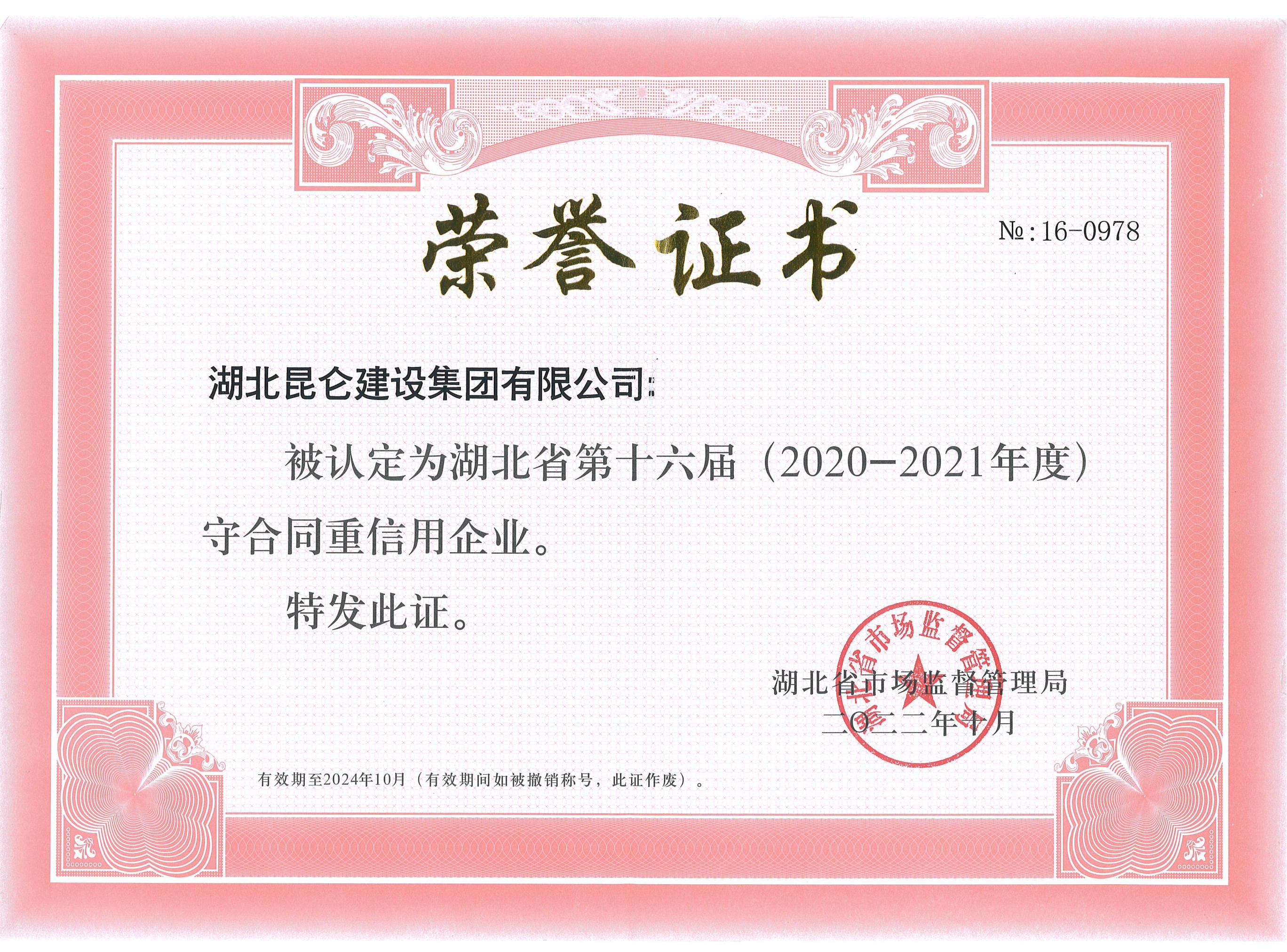 第十六屆2020-2021年度湖北省守合同重信用...