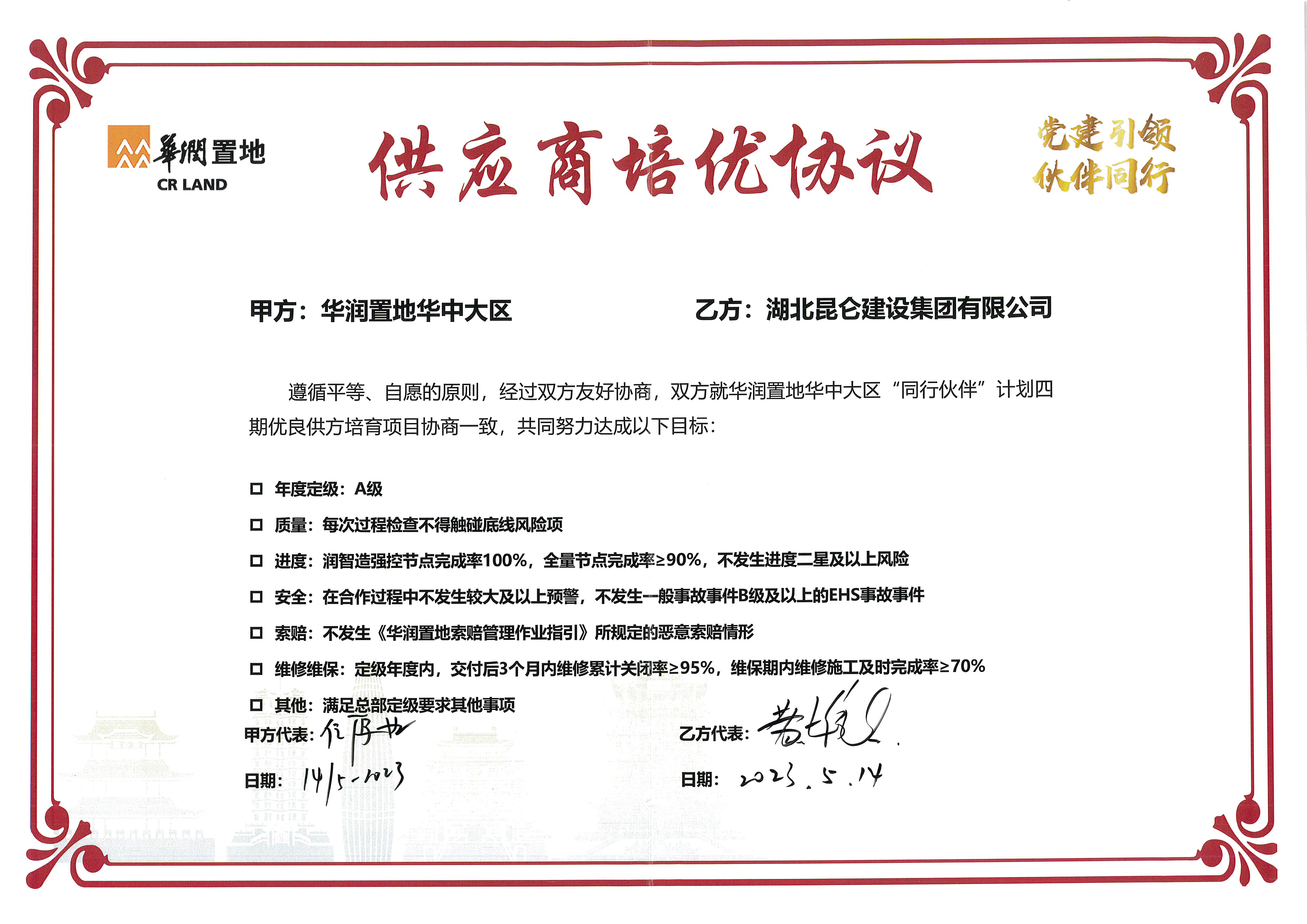 2023年5月14日簽署華潤置地華中大區(供應商...